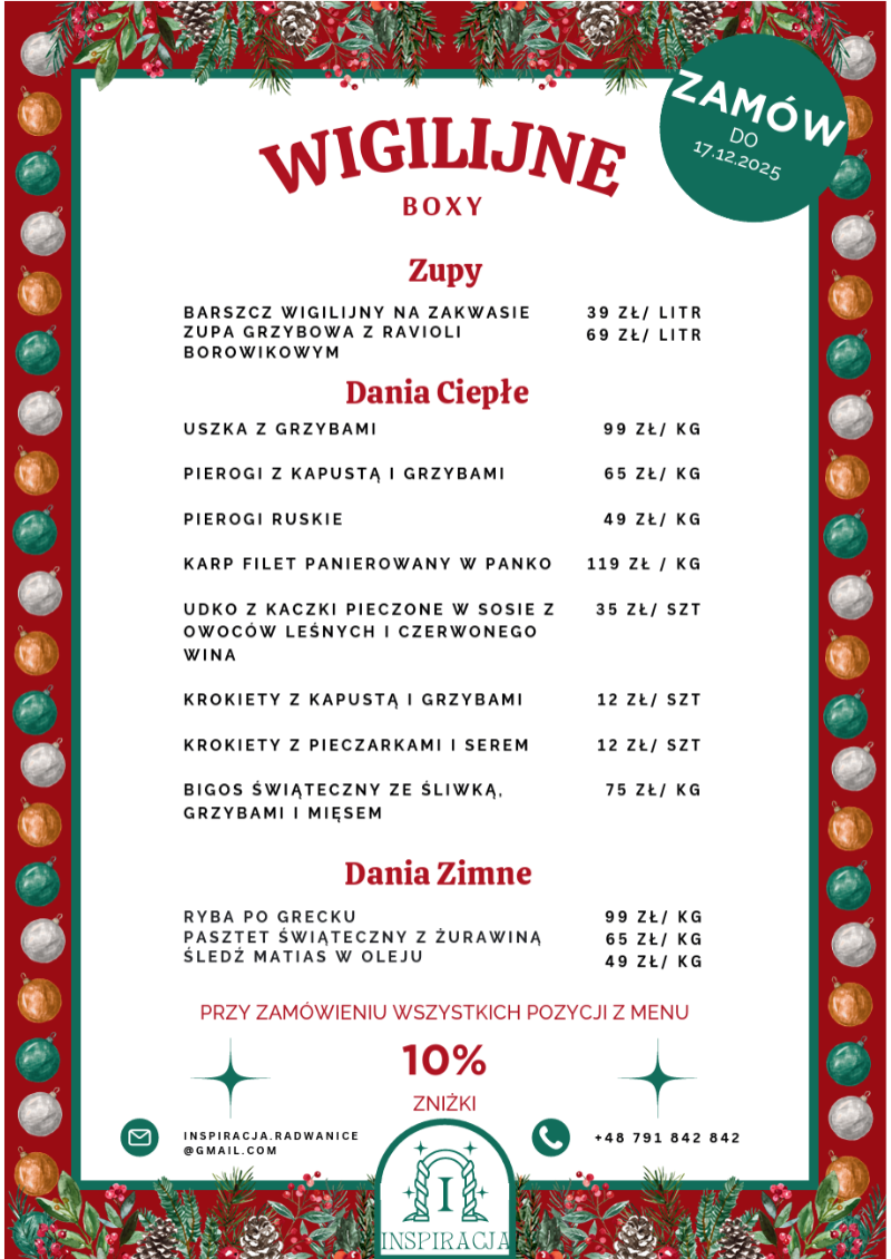 w Sali Eventowej Inspiracja - Radwanice przygotowaliśmy dla Ciebie tradycyjne smaki na Boże Narodzenie i na Wielkanoc.